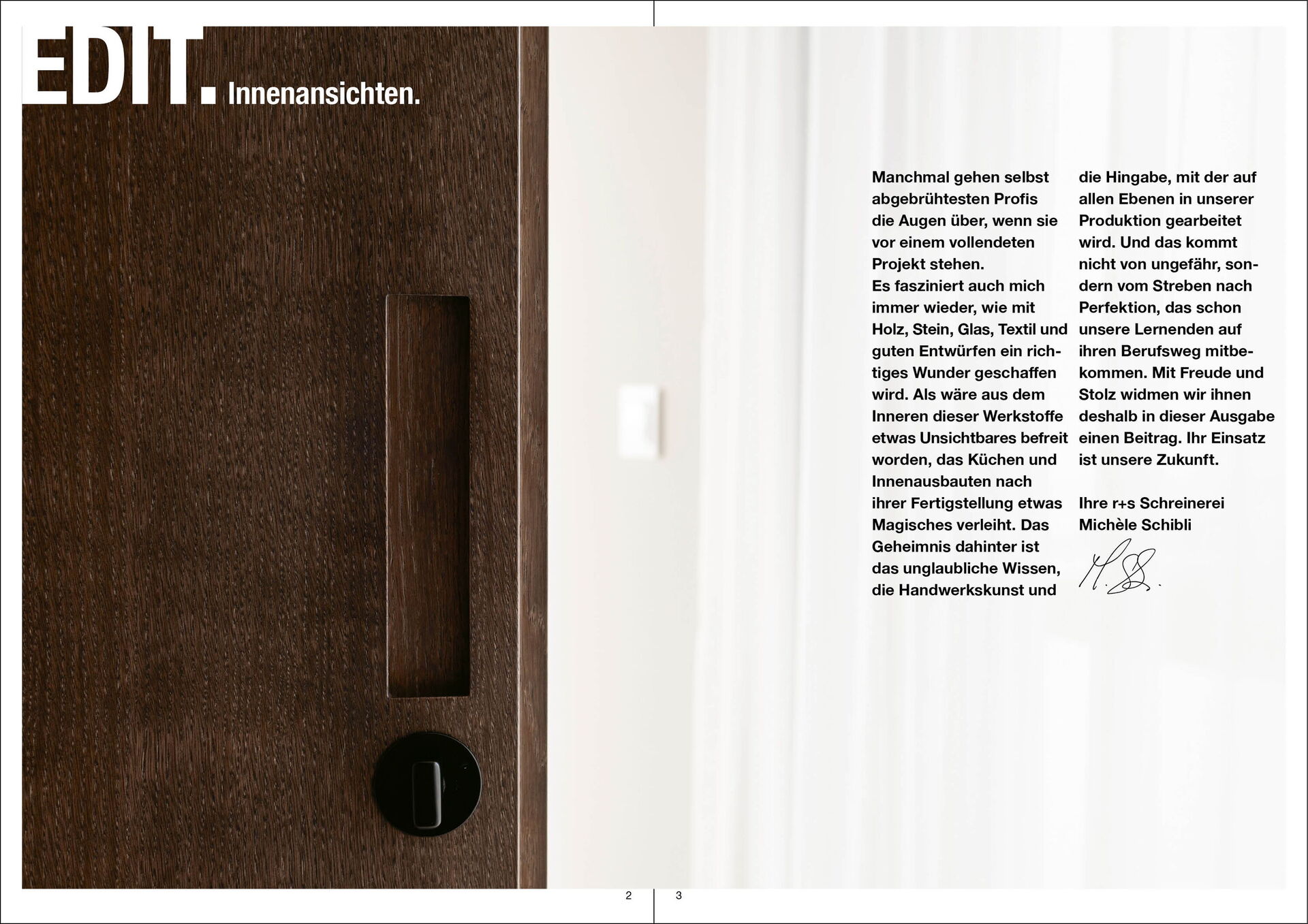 In unserem Kundenmagazin erhalten Sie einen Einblick in die Welt des Schreinerhandwerks. Wir stellen verschiedene Projekte vor und berichten über unsere aktuellsten Innovationen. Ideal, wenn man auf Ideensuche für sein nächstes Küchen- oder Innenausbauprojekt ist. Interessiert? Dann lassen Sie uns wissen, wohin wir die aktuelle Ausgabe senden dürfen.